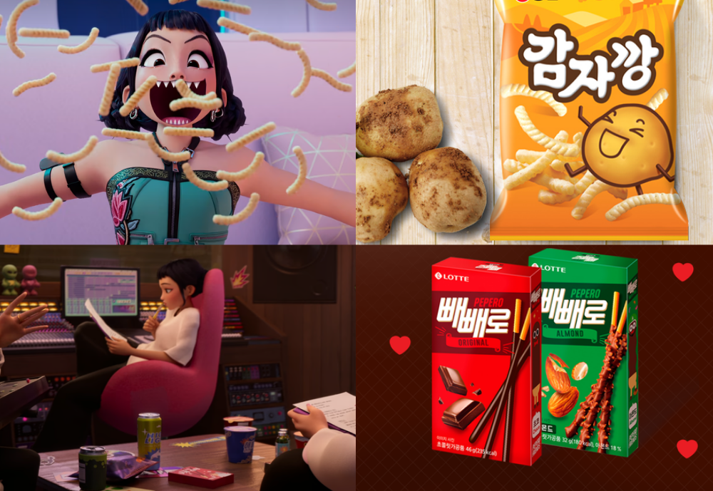 <데몬헌터스> © Netflix / <감자깡> © NONGSHIM CO.,LTD. / <빼빼로> © LOTTE
