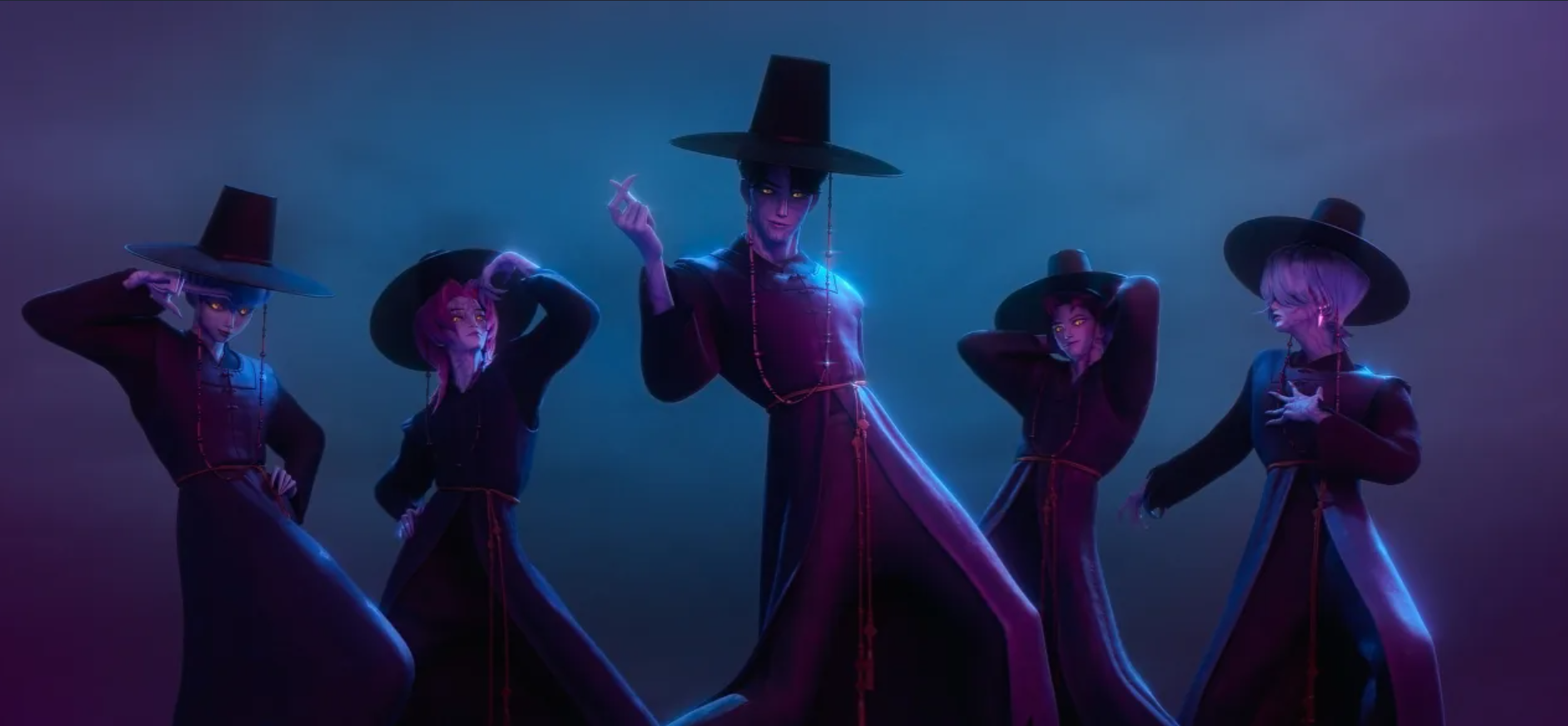 • Stage Costumes Inspired by Hanbok: The outfits of the three-member girl group Huntrix may look like modern idol costumes, but they incorporate hanbok details such as traditional patterns, the five traditional colors (obangsaek), decorative knots, and norigae ornaments.