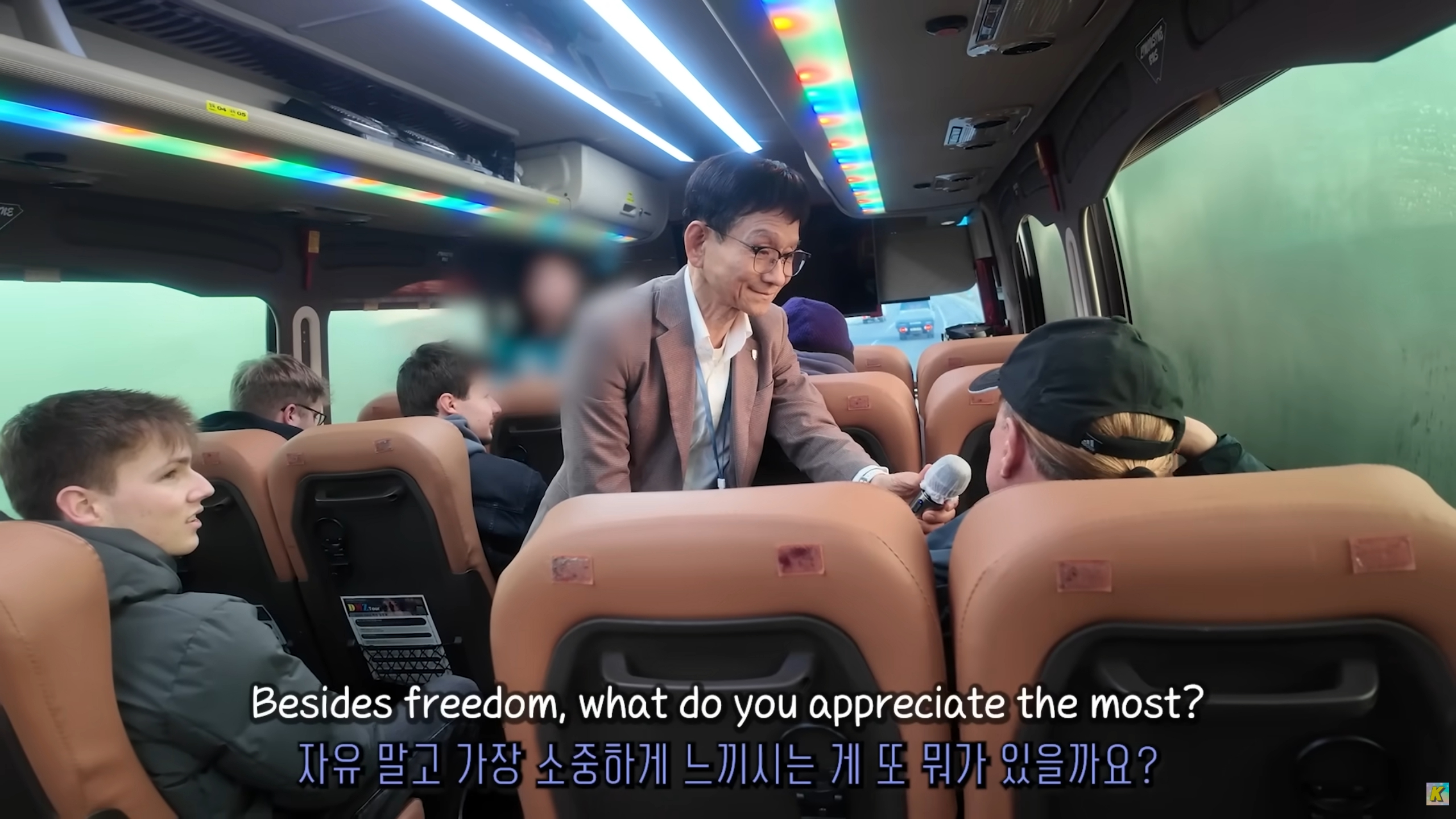 While traveling toward the DMZ, the tour includes an interview with a North Korean defector on the bus.