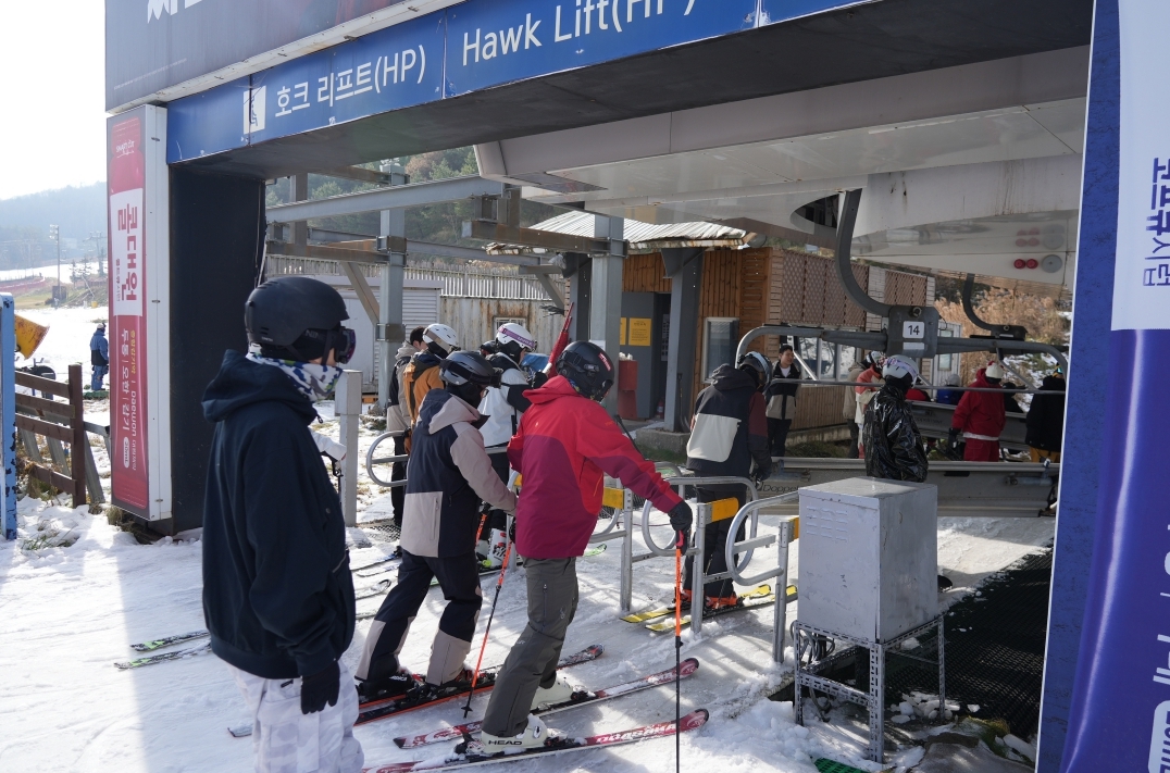 서울에서 약 50분 거리로 접근성이 뛰어나며, 초보자 중심 슬로프로 ‘첫 스키 경험’에 가장 많이 선택된다.